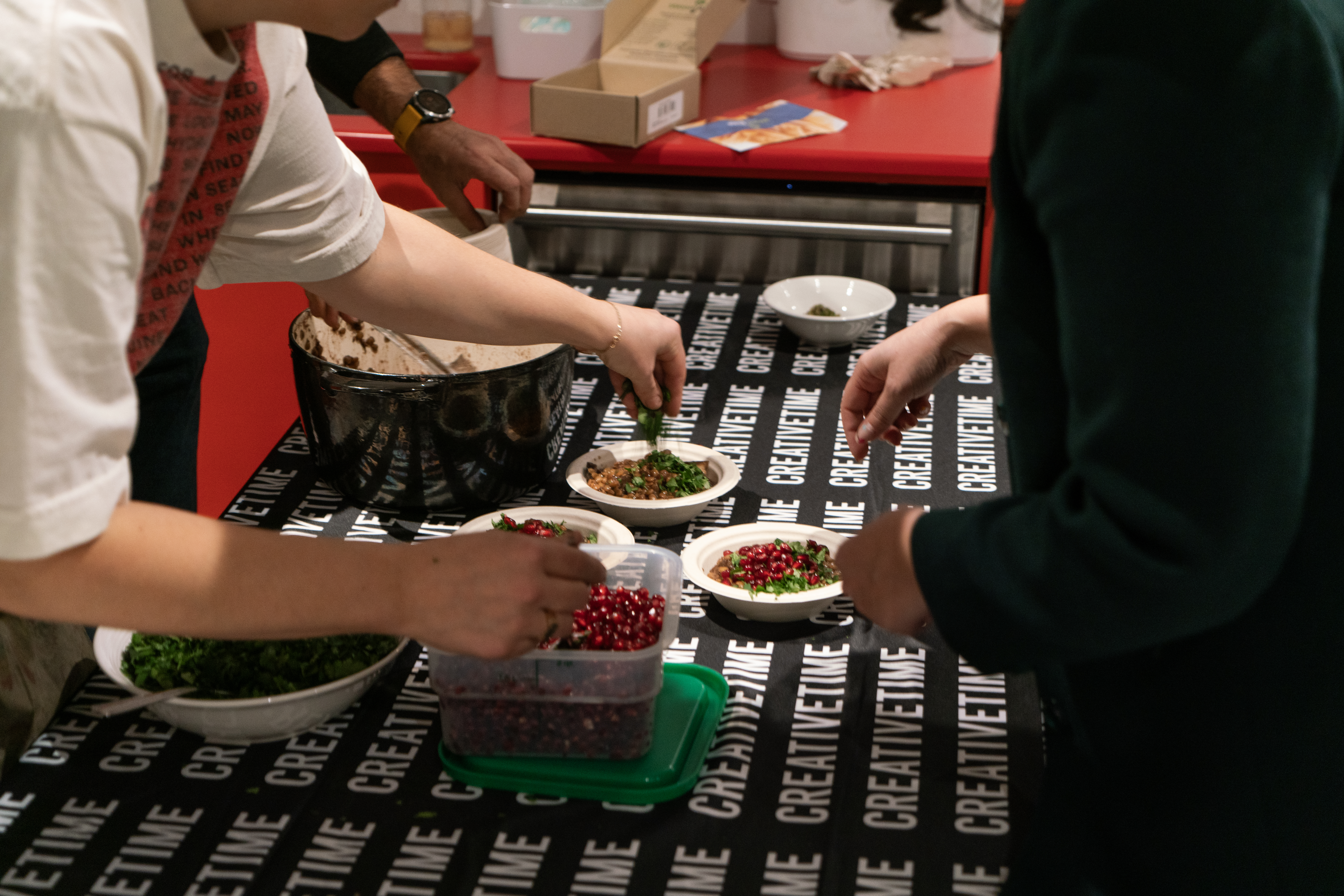 The cassette tape starts, it’s playing Michael Jackson’s Freedom, but 30 seconds in, you hear the songs of anti-colonial resistance. When you were a child your mother prepared rummaneyye (رمانية) a warm, hearty dish of pomegranate, lentils, eggplant, pomegranate juice, cumin, and coriander. A dish that was displaced together with the Palestinians from Yaffa to Gaza. Participants joined artist Khaled Jarrar for a special supper and evening of collective song in recognition of the importance of music and food in sustaining Palestine’s ongoing fight against genocide and land theft. The artist prepared rummaneyye, followed by songs of Palestinian resistance and liberation performed by Safira Berrada-Riggs, Mohammed Salah, Alber Baseel, Iskandar Dridi, and H. Sinno.
